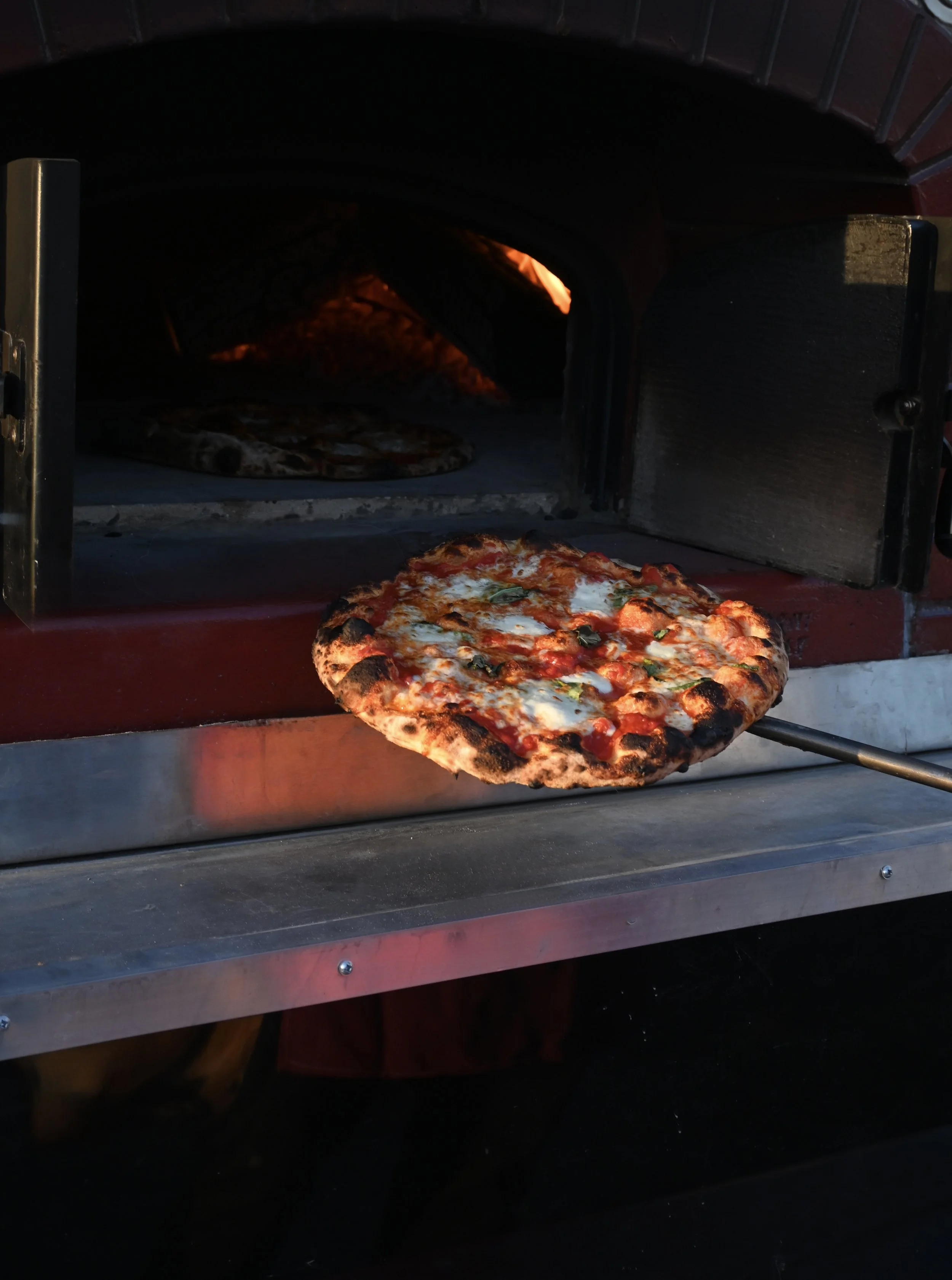We’re all about live-fire cooking. Our wood-fired pizza is the star, made fresh on-site and served hot from the oven. We also offer seasonal salads, charcuterie boards, and flavors inspired by Mediterranean and Latin American cooking — giving you a menu that feels fresh, colorful, and full of character.